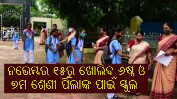 ନଭେମ୍ବର ୧୫ ତାରିଖରୁ ଖୋଲିବ ୬ଷ୍ଠ ଓ ୭ମ ଶ୍ରେଣୀ ବିଦ୍ୟାର୍ଥୀଙ୍କ ପାଇଁ ସ୍କୁଲ