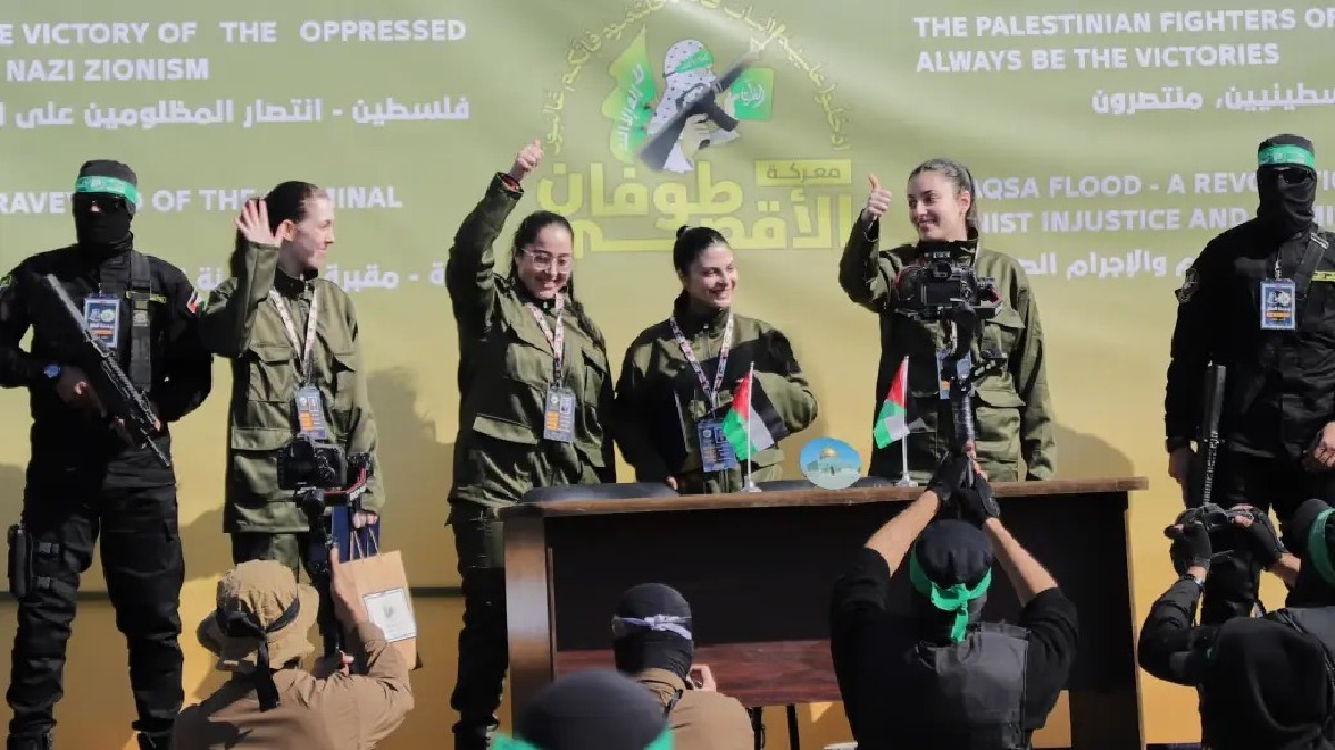 ମୁକ୍ତ ହୋଇଥିବା ଇସ୍ରାଏଲୀ ମହିଳା ସୈନ୍ୟ ଗାଜା ସିଟି ପାଲେଷ୍ଟାଇନ୍ ସ୍କୋୟାରରେ ଏକ ମଞ୍ଚ ଉପରେ ଛିଡ଼ାହୋଇ ଉପସ୍ଥିତ ଲୋକମାନଙ୍କୁ ହାତ ହଲାଉଥିବା ଦେଖାଯାଇଛି। ସେମାନେ ସେନା ପୋଷାକରେ ଥିଲେ। ଇସ୍ରାଏଲ୍ ୭୦ ବନ୍ଦୀଙ୍କୁ ମୁକ୍ତ କରିଥିଲେ ମଧ୍ୟ ସେମାନଙ୍କୁ ଗାଜା ଷ୍ଟ୍ରିପ୍ କିମ୍ବା ଓ୍ବେଷ୍ଟବ୍ୟାଙ୍କ ଯିବାକୁ ଅନୁମତି ମିଳିନାହିଁ। ସେମାନେ ଇଜିପ୍ଟ ପାର୍ଶ୍ୱର ରାଫାହ ସୀମାରେ ପହଞ୍ଚିଛନ୍ତି। ହମାସ୍ ଏବଂ ଇସ୍ରାଏଲ୍ ମଧ୍ୟରେ ଯୁଦ୍ଧବିରତି ପାଇଁ ଇଜିପ୍ଟ ଅନ୍ୟତମ ମୁଖ୍ୟ ମଧ୍ୟସ୍ଥ ଭାବେ ବର୍ଷେ ହେଲା ଉଦ୍ୟମ ଚଳାଇଥିଲା।