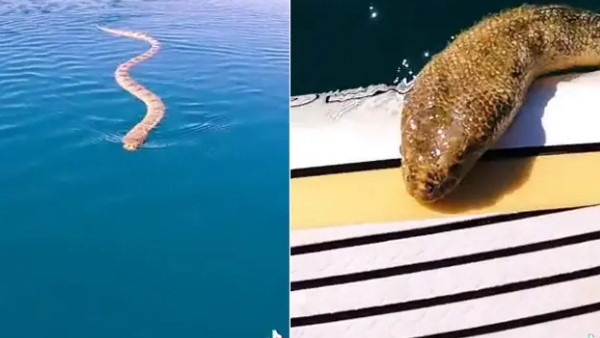 'ଗର୍ଲଫ୍ରେଣ୍ଡ' ସନ୍ଧାନରେ ସମୁଦ୍ର ମଝିରେ ଯୁବକଙ୍କୁ ଗୋଡ଼ାଇଲା ସାପ, ଦେଖନ୍ତୁ ଭିଡିଓ...