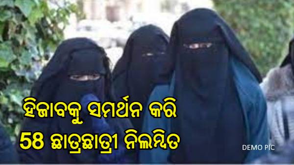 କର୍ଣ୍ଣାଟକର ଏକ ବିଦ୍ୟାଳୟର 58 ଜଣ ଛାତ୍ରଛାତ୍ରୀଙ୍କୁ ନିଲମ୍ବନ କରାଯାଇଛି । ଶିରାଲକୋପା ଜିଲ୍ଲାରେ ହିଜାବ ଉପରେ ନିଷେଧାଦେଶ ବିରୋଧରେ ପ୍ରଦର୍ଶନ କରିବାରୁ ଶୁକ୍ରବାର (ଫେବୃଆରୀ 18) ରେ ଛାତ୍ରଛାତ୍ରୀଙ୍କୁ ନିଲମ୍ବନ କରାଯାଇଛି ।