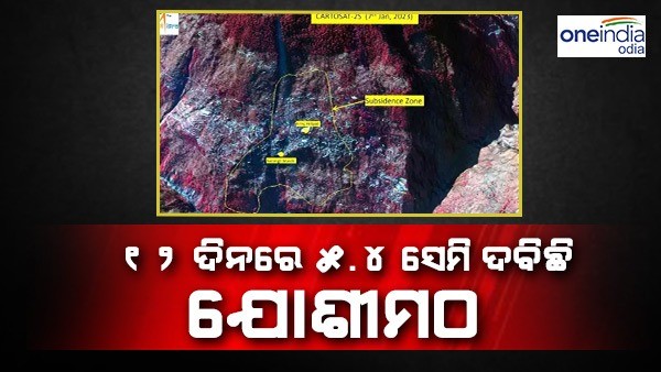 ISRO ର ନ୍ୟାସନାଲ ରିମୋଟ ସେନ୍ସିଂ କେନ୍ଦ୍ର ଯୋଶୀମଠର ସାଟେଲାଇଟ୍ ଫଟୋ ଜାରି କରିଛି । ବାହାରକୁ ଆସିଥିବା ଏହି ଫଟୋ ଆହୁରି ଚିନ୍ତା ବଢାଇଦେଇଛି । ISRO ର ଉପଗ୍ରହ ଫଟୋ ଅନୁଯାୟୀ, ଡିସେମ୍ବର 27 ରୁ ଜାନୁୟାରୀ 8 ମଧ୍ୟରେ ଯୋଶୀମଠ 5.4 ସେମି ତଳକୁ ଦବିଛି ।