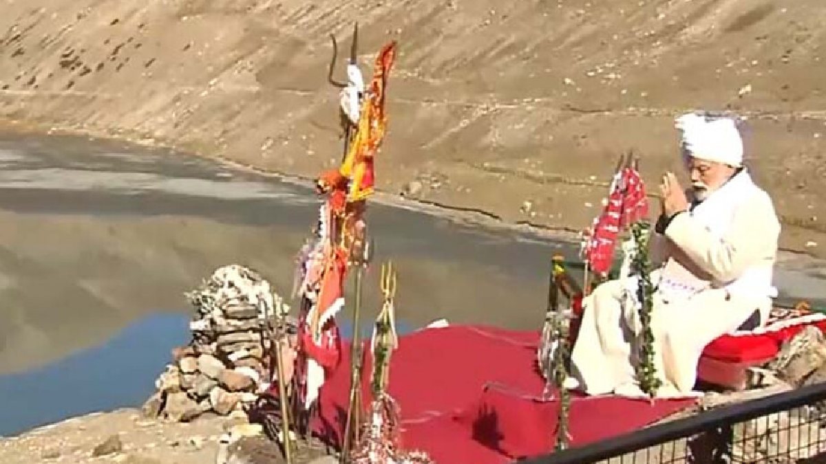 #WATCH | Pithoragarh, Uttarakhand: PM Narendra Modi performs pooja at Parvati Kund.