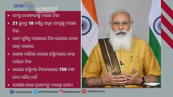 PM Modi to Address Nation Live : 18 ବର୍ଷ ଅଧିକ ସମସ୍ତଙ୍କୁ ମାଗଣା ଟିକା ନେଇ ଘୋଷଣା କଲେ ପ୍ରଧାନମନ୍ତ୍ରୀ ମୋଦୀ