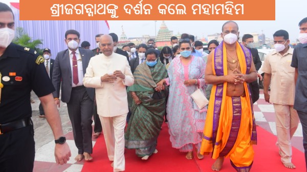 ପୁରୀ: ଦୁଇଦିନିଆ ଓଡିଶା ଗସ୍ତରେ ଆସି ମହାମହିମ ରାଷ୍ଟ୍ରପତି ଆଜି ସନ୍ଧ୍ୟାରେ ଶ୍ରୀମନ୍ଦିର ଯାଇ ଶ୍ରୀଜିଉମାନଙ୍କ ଦର୍ଶନ କରିଛନ୍ତି। ଆଜି ଅପରାହ୍ନରେ ରାଜଧାନୀ ଭୁବନେଶ୍ବରରେ ପ୍ରଥମେ ଅବତରଣ କରିବା ପରେ ଓଡିଶା ରାଜ୍ୟପାଳ ପ୍ରଫେସର ଗଣେଶୀ ଲାଲ ଏବଂ ମୁଖ୍ୟମନ୍ତ୍ରୀ ନବୀନ ପଟ୍ଟନାୟକ ମହାମହିମ ରାଷ୍ଟ୍ରପତିଙ୍କୁ ସ୍ଵାଗତ କରିଥିଲେ । ଭୁବନେଶ୍ବରରୁ ରାଷ୍ଟ୍ରପତି ପୁରୀ ପ୍ରସ୍ଥାନ କରିଥିଲେ । ରାଜଭବନ(ପୁରୀ)ରୁ ୪ଟା ୫୦ ମିନିଟ ସମୟରେ କଡ଼ା ସୁରକ୍ଷା ମଧ୍ୟରେ ବାହାରି ୧୦ ମିନିଟ୍ ପରେ ସିଂହ ଦ୍ୱାରରେ ପହଁଞ୍ଚିଥିଲେ। ସେଠାରେ ରାଷ୍ଟ୍ରପତିଙ୍କୁ ଶ୍ରମନ୍ଦିର ପରିଚାଳନା କମିଟି ପକ୍ଷରୁ ସ୍ୱାଗତ କରାଯାଇଥିଲା। ଏହାପରେ ରାଷ୍ଟ୍ରପତି ଶ୍ରୀମନ୍ଦିର ଭିତରକୁ ପ୍ରବଶ କରିଥିଲେ। ରାଷ୍ଟ୍ରପତି ଗର୍ଭଗୃହ ନିକଟରୁ ମହାପ୍ରଭୁ ଜଗନ୍ନାଥ, ବଳଭଦ୍ର ଏବଂ ମା ସୁଭଦ୍ରାଙ୍କୁ ଦର୍ଶନ କରିଥିଲେ। ଏହି ସମୟରେ ତାଙ୍କ ସହିତ ତାଙ୍କ ପତ୍ନୀ ସବିତା କୋବିନ୍ଦ, ଝିଅ ଏବଂ ଅନ୍ୟ ପରିବାର ବର୍ଗ ମହାପ୍ରଭୁଙ୍କ ଦର୍ଶନ କରିଥିଲେ। ଏହା ପରେ ସେମାନେ ମା' ବିମଳା ଓ ଲକ୍ଷ୍ମି ମନ୍ଦିର ଯାଇ ଦର୍ଶନ କରିଥିଲେ।