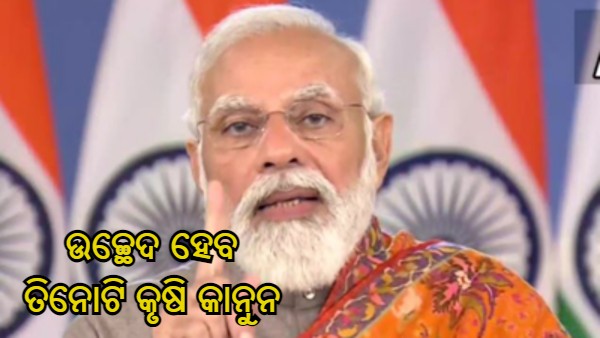 ପ୍ରଧାନମନ୍ତ୍ରୀ ନରେନ୍ଦ୍ର ମୋଦୀ ଆଜି ସକାଳ 9 ଟାରେ ଦେଶକୁ ସମ୍ବୋଧିତ କରୁଥିବାବେଳେ ସମସ୍ତ ତିନୋଟି କୃଷି ଆଇନ ପ୍ରତ୍ୟାହାର କରିବା ନେଇ ଘୋଷଣା କରିଛନ୍ତି ।