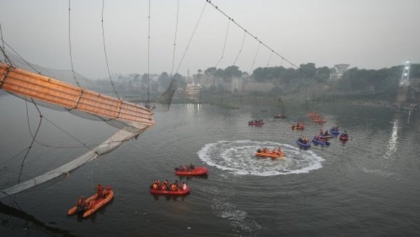 - ଉଲ୍ଲେଖଯୋଗ୍ୟ, ମୋର୍ବି ବ୍ରିଜ ଦୁର୍ଘଟଣାରେ ଏପର୍ଯ୍ୟନ୍ତ 141 ଜଣଙ୍କର ମୃତ୍ୟୁ ହୋଇଛି । ରବିବାର ସନ୍ଧ୍ୟାରେ ଅଘଟଣ ସମୟରେ ପ୍ରାୟ 400 ଲୋକ ମୋର୍ବିର ମଚ୍ଛୁ ନଦା ଉପରେ ଥିବା ଝୁଲା ପୋଲ ପରିଦର୍ଶନ କରୁଥିଲେ । ଏହି ଦୁର୍ଘଟଣାରେ 177 ଜଣଙ୍କୁ ଉଦ୍ଧାର କରାଯାଇଛି । ଅନେକଙ୍କୁ ମୋର୍ବି ସିଭିଲ ହସ୍ପିଟାଲରେ ଚିକିତ୍ସା କରାଯାଉଛି ।