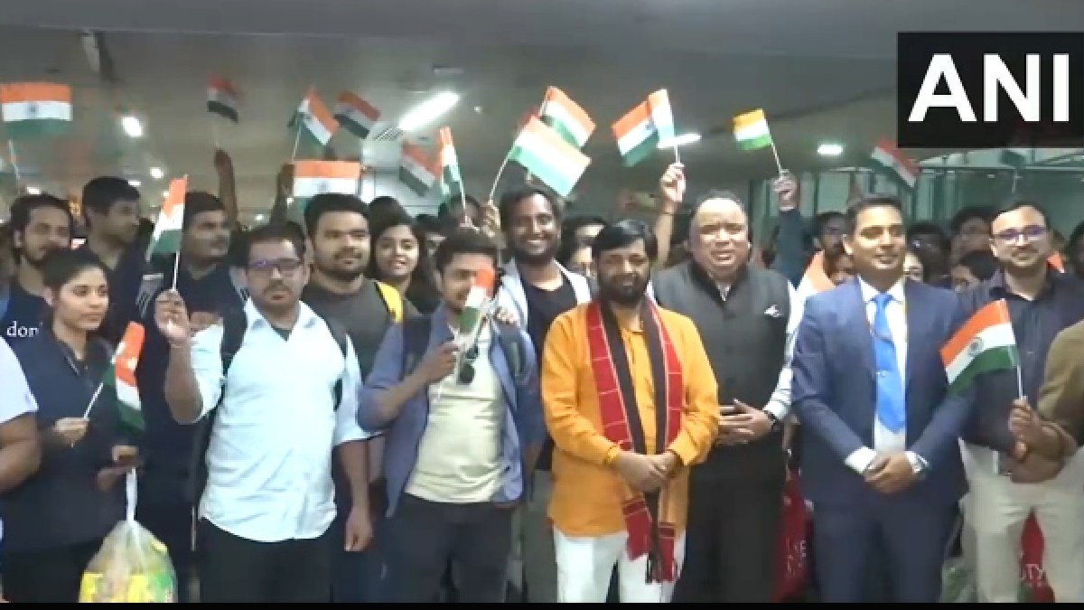 #WATCH | "Bharat Mata Ki Jai" chants by Indian nationals as they arrive in Delhi from Israel