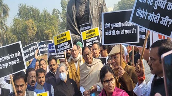 ଆଜି ଗୃହକାର୍ଯ୍ୟ ଆରମ୍ଭ ହେବା ପରେ କଂଗ୍ରେସ ସାଂସଦ ସୋନିଆ ଗାନ୍ଧୀ ଏବଂ ଅନ୍ୟ ବିରୋଧୀଦଳ ନେତାମାନେ ତାୱାଙ୍ଗରେ ଭାରତ-ଚୀନ୍ ବିଷୟରେ ଆଲୋଚନା କରିବା ପାଇଁ ଦାବି କରି କ୍ୟାମ୍ପସ ଭିତରେ ଥିବା ଗାନ୍ଧୀ ପ୍ରତିମୂର୍ତ୍ତି ତଳେ ବିକ୍ଷୋଭ ପ୍ରଦର୍ଶନ କରିଛନ୍ତି । ଏହି ସମୟରେ ସାଂସଦମାନେ ହାତରେ ପ୍ଲାକାର୍ଡ ଧରିଥିବାର ଦେଖିବା ପାଇଁ ମିଳିଥିଲା । ଯେଉଁଥିରେ ଲେଖାଯାଇଥିଲା- ତାୱାଙ୍ଗ ପ୍ରସଙ୍ଗରେ କେବେ ମୁଁହ ଖୋଲିବେ ମୋଦୀ ।