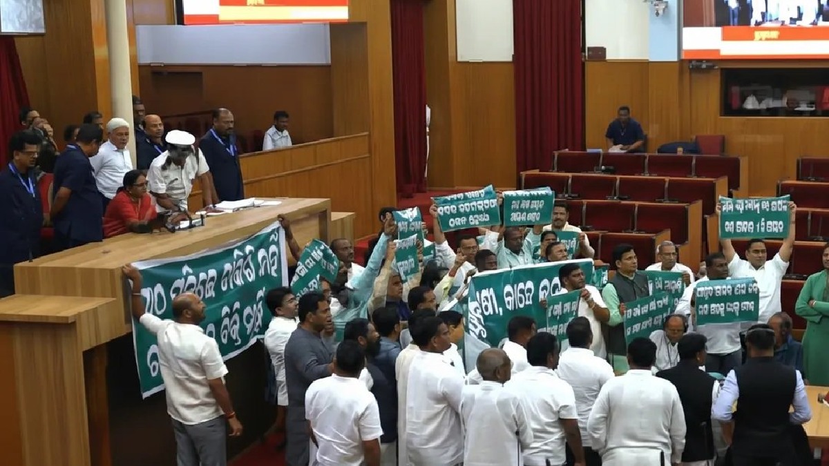 ଚାଲିପାରିଲାନି ବିଧାନସଭା ପ୍ରଶ୍ନକାଳ; ସାଢ଼େ ୧୧ଟା ଯାଏଁ ଗୃହ ମୁଲତବି, ମୁଣ୍ଡରେ କଳାପଟି ବାନ୍ଧି ପ୍ରତିବାଦ କରୁଛି କଂଗ୍ରେସ