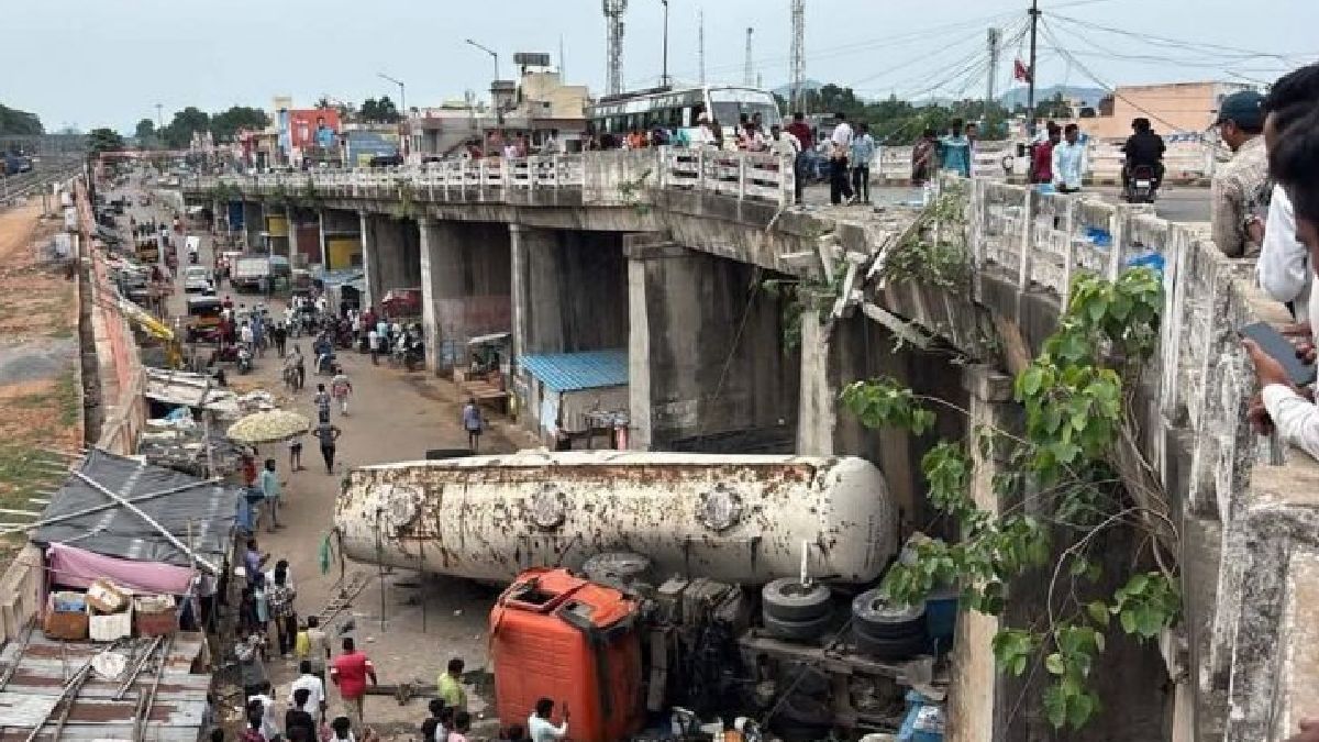 ଫ୍ଲାଏଓଭରରୁ ଖସିଲା ଟ୍ୟାଙ୍କର, ଡ୍ରାଇଭର ଫେରାର