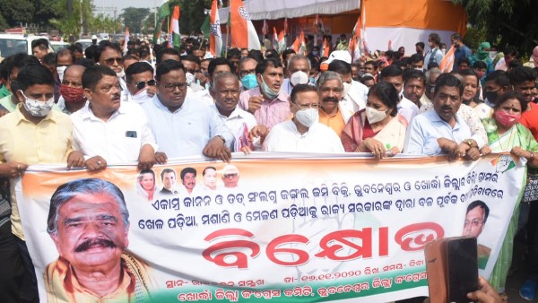 ଏକାମ୍ର କାନନ ଓ ତତ୍ ସଂଲଗ୍ନ ଜଙ୍ଗଲ ଜମି ବିକ୍ରି ପ୍ରତିବାଦରେ କଂଗ୍ରେସର ବିକ୍ଷୋଭ