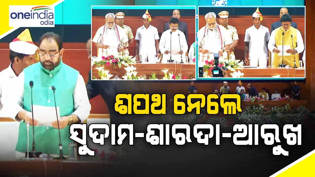 ଆଜି ଲୋକସେବା ଭବନର କନଭେନସନ ସେଣ୍ଟରରେ ସକାଳ ୯ଟା ୫୦ ରେ କ୍ୟାବିନେଟ ମନ୍ତ୍ରୀ ଭାବେ ଶପଥ ଗ୍ରହଣ କରିଛନ୍ତି ବିକ୍ରମ କେଶରୀ ଆରୁଖ, ଶାରଦା ନାୟକ ଏବଂ ସୁଦାମ ମାରାଣ୍ଡି । ରାଜ୍ୟପାଳ ପ୍ରଫେସର ଗଣେଶୀ ତିନି ନୂଆ ମନ୍ତ୍ରୀଙ୍କୁ ଶପଥ ପାଠ କରାଇଛନ୍ତି । ଶପଥ ଗ୍ରହଣ ସମୟରେ ଉପସ୍ଥିତ ରହିଥିଲେ ମୁଖ୍ୟମନ୍ତ୍ରୀ ନବୀନ ପଟ୍ଟନାୟକ । ସେହିପରି ଲୋକସେବା ଭବନର ସମ୍ମିଳନୀ କକ୍ଷରେ ଅନ୍ୟ ସମସ୍ତ ମନ୍ତ୍ରୀ, ବିଧାୟକମାନେ ମଧ୍ୟ ଉପସ୍ଥିତ ଥିଲେ ।