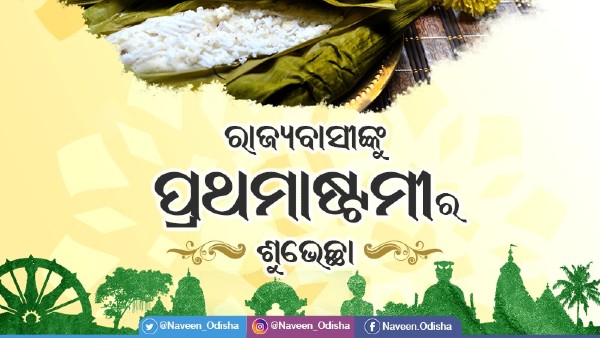 ମୁଖ୍ୟମନ୍ତ୍ରୀ ଟୁଇଟ କରି ଜଣାଇଛନ୍ତି "ପବିତ୍ର ପ୍ରଥମାଷ୍ଟାମୀ ଅବସରରେ ରାଜ୍ୟବାସୀଙ୍କୁ ମୋର ଆନ୍ତରିକ ଶୁଭେଚ୍ଛା। ଘରର ଜ୍ୟେଷ୍ଠ ସନ୍ତାନମାନଙ୍କୁ ପୂଜା କରିବାର ଏହି ପରମ୍ପରା ଆମ ସଂସ୍କୃତିର ଅନନ୍ୟ ନିଦର୍ଶନ। ମହାପ୍ରଭୁ ଶ୍ରୀ ଜଗନ୍ନାଥଙ୍କ ନିକଟରେ ସମସ୍ତଙ୍କର ମଙ୍ଗଳମୟ ଜୀବନ କାମନା କରୁଛି।"