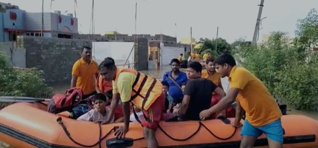 କଟକ: ରାଜ୍ୟରେ ଏବେ ଚିନ୍ତା ବଢାଇଛି ବନ୍ୟା ସ୍ଥିତି । ରାଜ୍ୟରେ ଲଘୁଚାପ ଜନିତ ଲଗାଣ ବର୍ଷା ପରେ ମହାନଦୀ ସହିତ ବିଭିନ୍ନ ମୁଖ୍ୟନଦୀରେ ସୃଷ୍ଟି ହୋଇଛି ବନ୍ୟା । କଟକର ଅନେକ ସ୍ଥାନ ବନ୍ୟାପାଣି ଘରେରେ । ଆଜି କଟକ ଗତିରାଉତ ପାଟଣା ସରସ୍ବତୀ ଶିଶୁମନ୍ଦିର ଭିତରକୁ ହଟାତ୍ ମାଡ଼ି ଆସିଥିଲା ବନ୍ୟାପାଣି । ଫଳରେ ଶିକ୍ଷକ ଶିକ୍ଷୟତ୍ରୀଙ୍କୁ ମିଶାଇ ମୋଟ୍ ୭୮୦ ଜଣ ଏହି ସ୍କୁଲ ଭିତରେ ଫସିରହିଥିଲେ । ଆବାସିକ ବିଦ୍ୟାଳୟର ଛାତ୍ରଛାତ୍ରୀଙ୍କୁ ଅଗ୍ନିଶମ ବିଭାଗ ପକ୍ଷରୁ ଉଦ୍ଧାର କାର୍ଯ୍ୟାଜାରି ରହିଛି ।