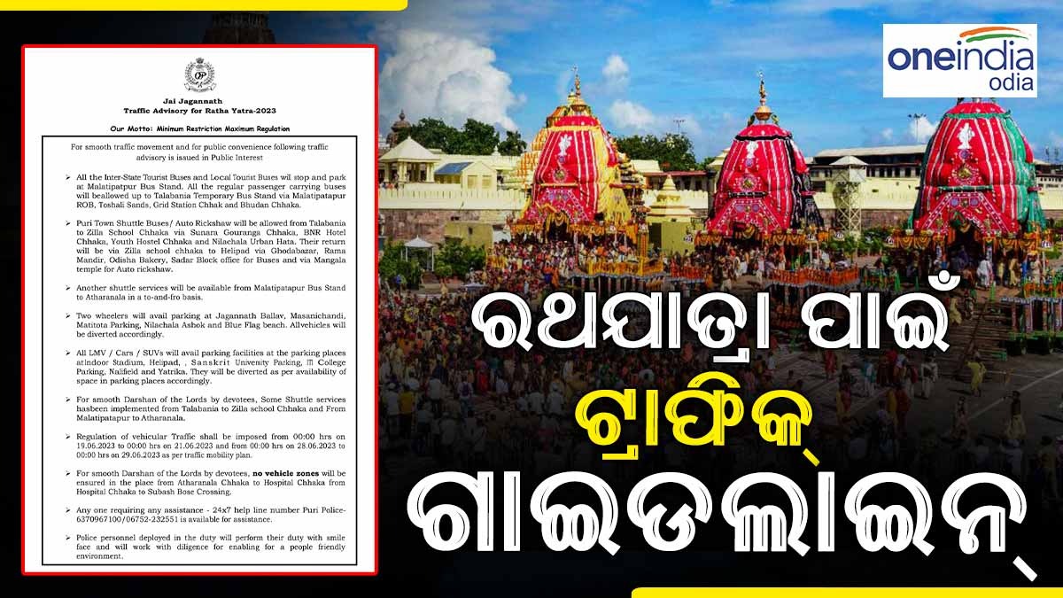 ରଥଯାତ୍ରା ପାଇଁ ଜାରି ହେଲା ଟ୍ରାଫିକ୍ ଗାଇଡଲାଇନ୍: ଜାଣନ୍ତୁ କେଉଁଠି କରିବେ ପାର୍କିଂ ? କେଉଁ ବାଟ ଦେଇ ଯିବେ ବଡ଼ ଦାଣ୍ଡ ?