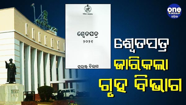 ର୍ଷ ୨୦୨୧ର ଶ୍ବେତପତ୍ର ଜାରିକଲା ଗୃହ ବିଭାଗ । ବିଧାନସଭାରେ ଗୃହ ବିଭାଗର ଖର୍ଚ୍ଚ ଦାବି ପୂର୍ବରୁ ଶ୍ବେତପତ୍ର ଜାରି କରାଯାଇଛି । ରାଜ୍ୟରେ ଆଇନଶୃଙ୍ଖଳା ଶାନ୍ତିପୂର୍ଣ୍ଣ ରହିଛି ବୋଲି ଶ୍ୱେତପତ୍ରରେ ଏହା ଉଲ୍ଲେଖ ରହିଛି।