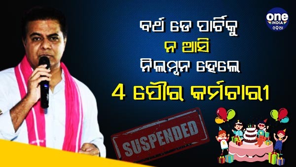 ତେଲେଙ୍ଗାନା ମୁଖ୍ୟମନ୍ତ୍ରୀଙ୍କ ପୁଅ ତଥା ମନ୍ତ୍ରୀ କେ.ଟି.ଆରଙ୍କ ଜନ୍ମଦିନ ପାର୍ଟିରେ ଯୋଗ ଦେଇ ନ ଥିବାରୁ ରାଜ୍ୟରେ କେ ବେଲମପଲ୍ଲୀ ନଗର ନିଗମର ଚାରି ଜଣ କର୍ମୀଙ୍କୁ ନିଲମ୍ବିତ କରାଯାଇଛି ।