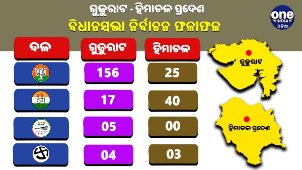 ଗୁଜୁରାଟରେ ବିଜେପି 156 ଆସନ ଜିତି ଇତିହାସ ରଚିଛି । ଅପରପକ୍ଷରେ ହିମାଚଳରେ ବିଜେପି ହାତରୁ ସରକାର ଛଡ଼ାଇ ନେଇଛି କଂଗ୍ରେସ । କଂଗ୍ରେସ 40 ଆସନ ଜିତି ବହୁମତ ହାସଲ କରିଛି ।