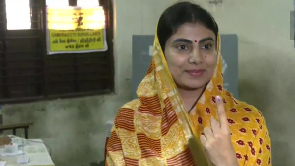 अहमदाबाद (गुजरात): यूपी की राज्यपाल आनंदीबेन पटेल ने शिलाज अनुपम स्कूल में मतदान किया।