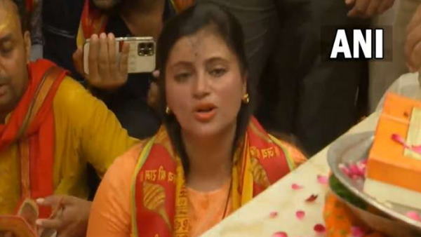 #WATCH | Amravati MP Navneet Rana recites Hanuman Chalisa at Hanuman Temple, CP in Delhi. Her husband & Maharashtra MLA Ravi Rana also present with her.