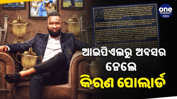 ଆଜି କିରଣ ପୋଲାର୍ଡ ଆଇପିଏଲରୁ ସନ୍ୟାସ ନେବାକୁ ଘୋଷଣା କରିଛନ୍ତି । ୧୩ ବର୍ଷ ଯାଏଁ ମୁମ୍ବାଇ ଇଣ୍ଡିଆନ୍ସ ପକ୍ଷରୁ ଖେଳିଥିବା ପୋଲାର୍ଡଙ୍କୁ ଏବେ ଗୁରୁଦାୟିତ୍ୱ ମିଳିଛି ।