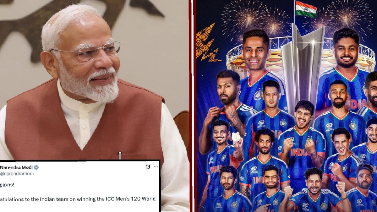 ପ୍ରଧାନମନ୍ତ୍ରୀ ମୋଦୀ ସୋସିଆଲ ମିଡିଆ 'ଏକ୍ସ'ରେ କହିଚନ୍ତି, ଆଇସିସି ପୁରୁଷ ଟି୨୦ ବିଶ୍ୱକପ୍ ଜିତିବା ପାଇଁ ଭାରତୀୟ ଦଳକୁ ଅଭିନନ୍ଦନ ଜଣାଉଛି। ଏହି ଉଲ୍ଲେଖନୀୟ ବିଜୟ ଅସାଧାରଣ ଦକ୍ଷତା, ଦୃଢ଼ ପ୍ରତିବଦ୍ଧତା ଏବଂ ଦଳଗତ କାର୍ଯ୍ୟକୁ ପ୍ରତିଫଳିତ କରୁଛି। ସେମାନେ ଟୁର୍ଣ୍ଣାମେଣ୍ଟରେ ଉତ୍କୃଷ୍ଟ ଦୃଢ଼ତା ଦେଖାଇଛନ୍ତି। ଏହି ବିଜୟ ପ୍ରତ୍ୟେକ ଭାରତୀୟ ହୃଦୟକୁ ଗର୍ବ ଏବଂ ଆନନ୍ଦରେ ଭରି ଦେଇଛି।