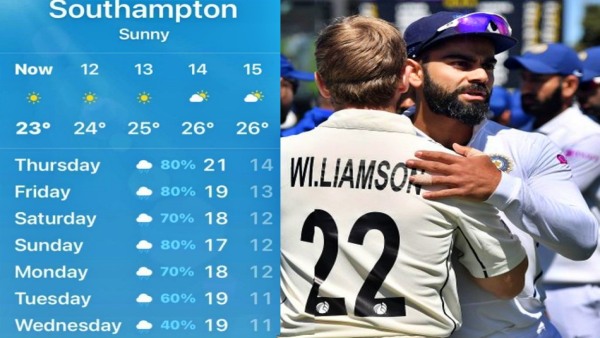 ଆକ୍ୟୁୱେଜର ରିପୋର୍ଟ ଅନୁଯାୟୀ, ପ୍ରଥମ ଦିନରେ ତାପମାତ୍ରା 16 ଡିଗ୍ରୀ ସେଣ୍ଟିଗ୍ରେଡ୍ ହେବ । ଯାହା କ୍ରିକେଟ୍ ଖେଳିବା ପାଇଁ ବହୁତ ଭଲ । କିନ୍ତୁ ପାଣିପାଗ ବିଭାଗ ଏଠାରେ ୟେଲୋ ୱାର୍ଣ୍ଣିଂ ଜାରି କରିଛି ଯାହା ଖେଳ ଉପରେ ଏହାର ପ୍ରଭାବ ପକାଇବ । ଯଦି ଆମେ ଦ୍ୱିତୀୟ ଦିନ ବିଷୟରେ କଥା ହେବା, ତେବେ ତାପମାତ୍ରା 19 ଡିଗ୍ରୀ ରହିବ ବୋଲି ଆଶା କରାଯାଉଛି । ଏହି ଦିନ ସାଉଥମ୍ପଟନ୍ ଗ୍ରାଉଣ୍ଡରେ ମ୍ୟାଚ ଭଲ ହେବାର ସମ୍ଭାବନା ରହିବ। ଶନିବାର ଦିନ ବର୍ଷା ଏବଂ ବଜ୍ରପାତ ହେବାର ସମ୍ଭାବନା ବହୁତ କମ୍, କିଛି ମାତ୍ରାରେ ବର୍ଷା ହୋଇପାରେ କିନ୍ତୁ ଶୁକ୍ରବାର ଠାରୁ କମ୍ ହେବ ।